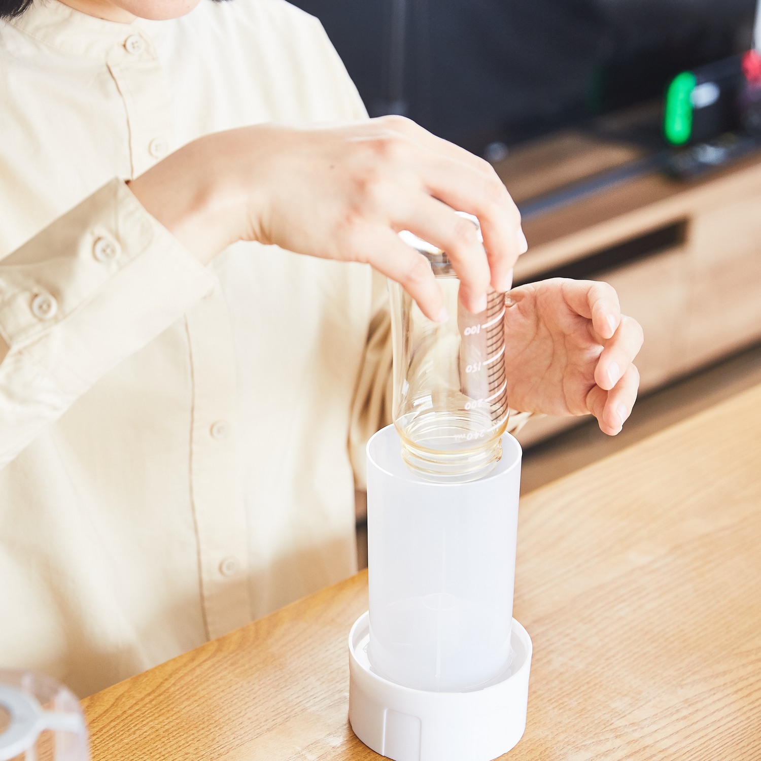 また、外出中に思わぬトラブルや帰宅困難が発生したとしても、そのパフォーマンスを落としません。付属のアタッチメントを使用することで液体ミルクも加温が可能になり、災害備蓄としてもその効果を発揮します。